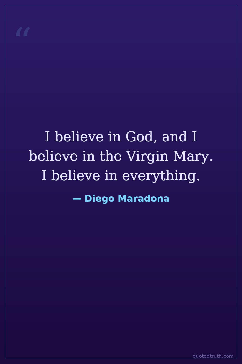 I believe in God, and I believe in the Virgin Mary. I believe in everything.
