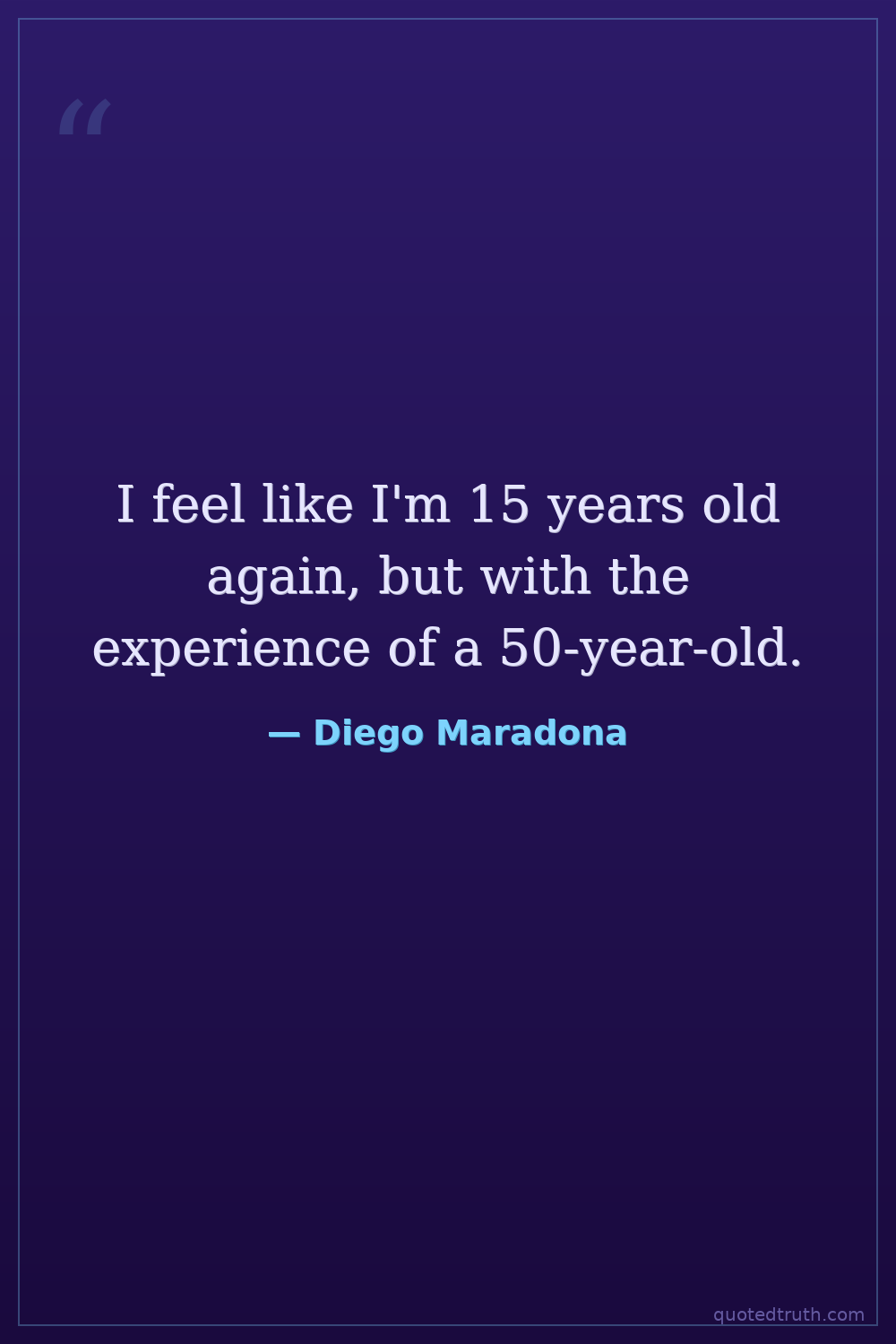 I feel like I'm 15 years old again, but with the experience of a 50-year-old.
