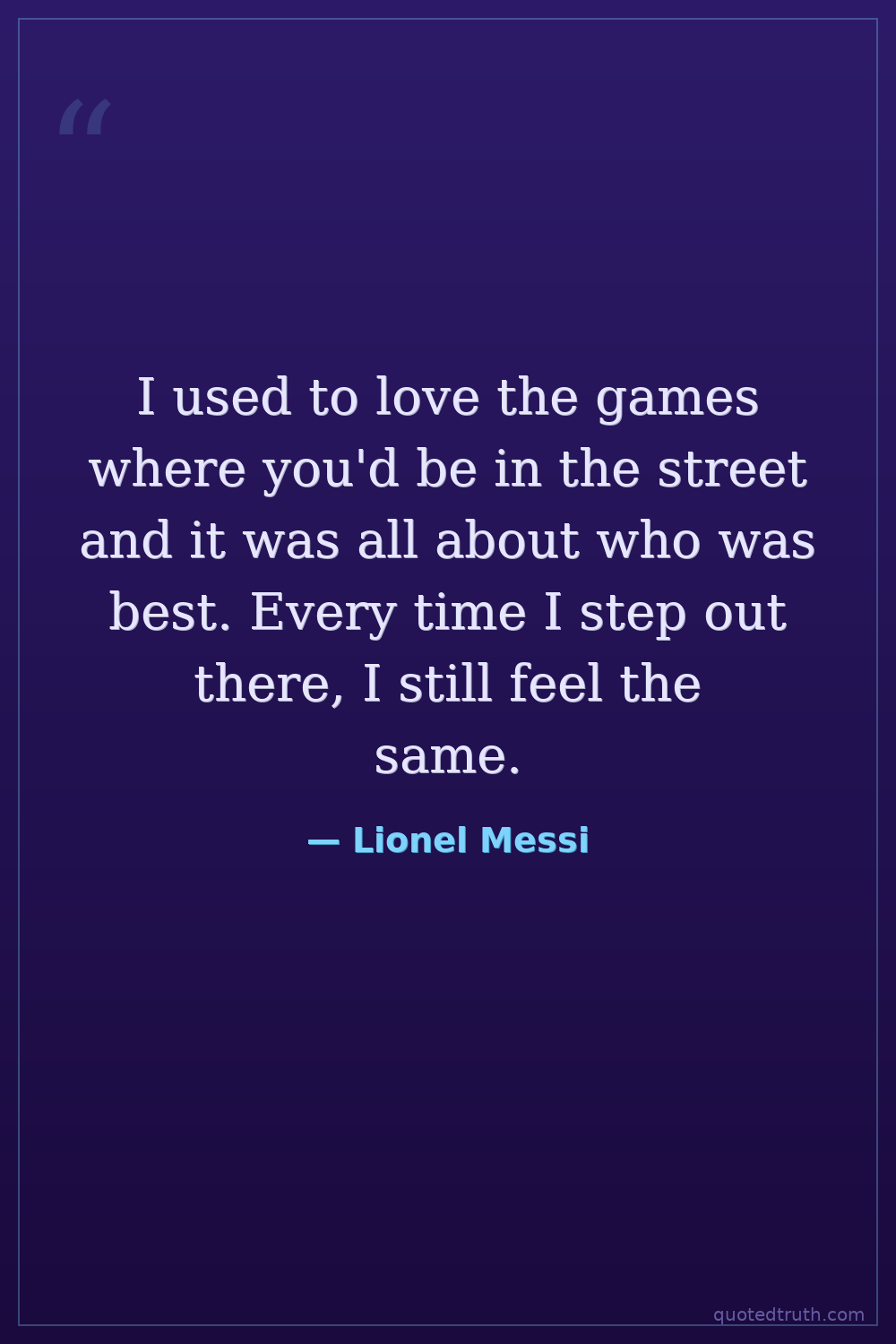 I used to love the games where you'd be in the street and it was all about who was best. Every time I step out there, I still feel the same.
