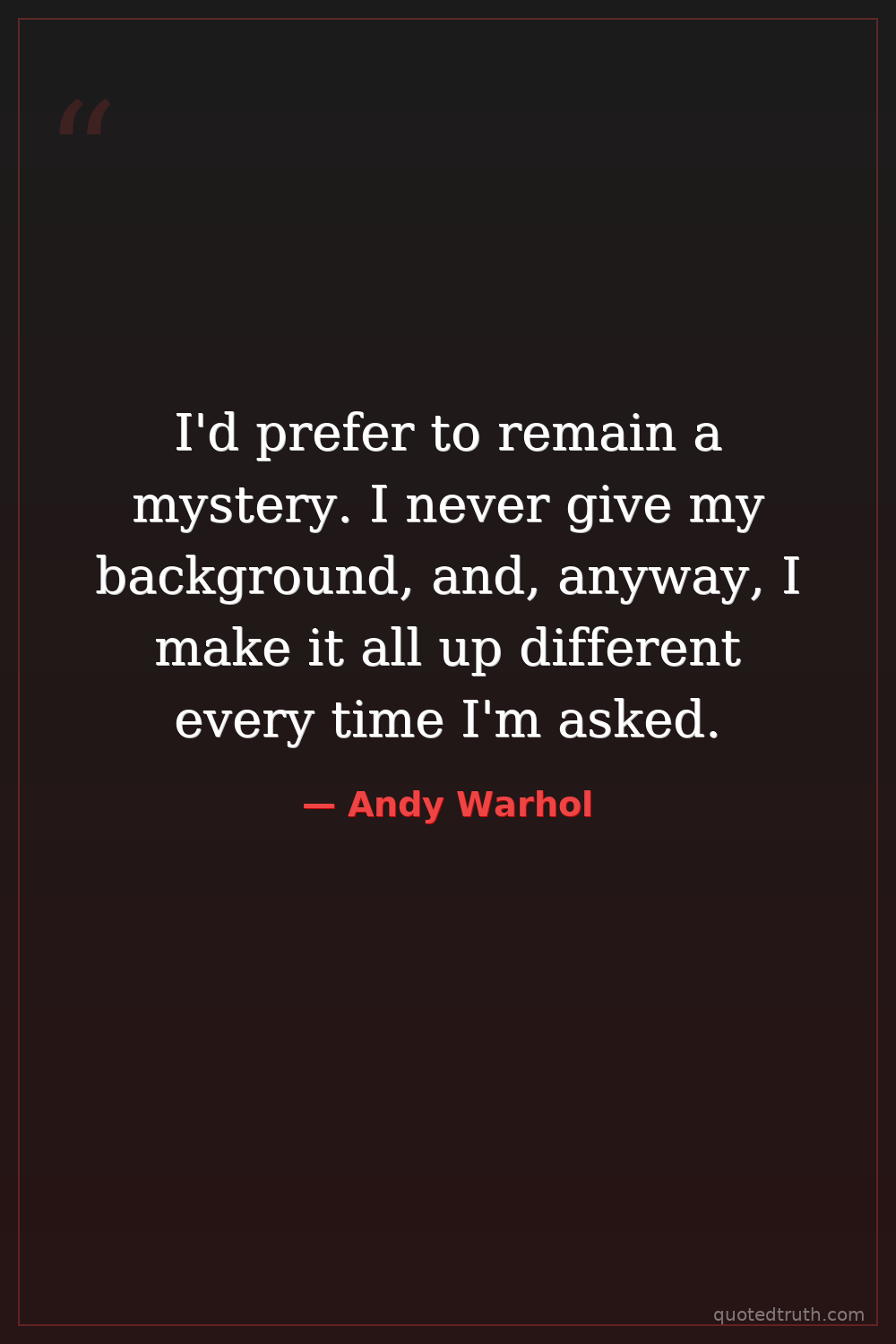 I'd prefer to remain a mystery. I never give my background, and, anyway, I make it all up different every time I'm asked.
