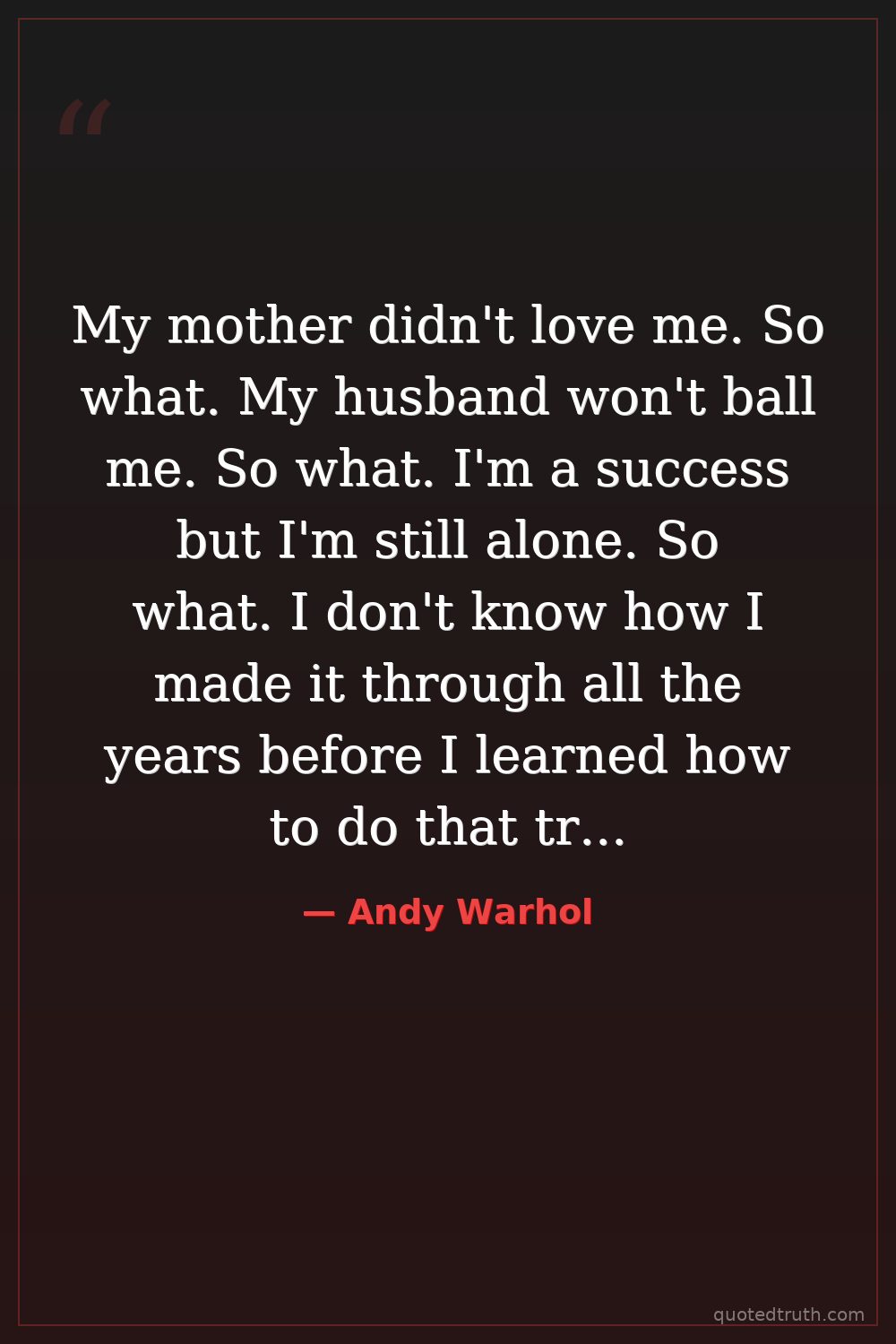 My mother didn't love me. So what. My husband won't ball me. So what. I'm a success but I'm still alone. So what. I don't know how I made it through all the years before I learned how to do that trick.