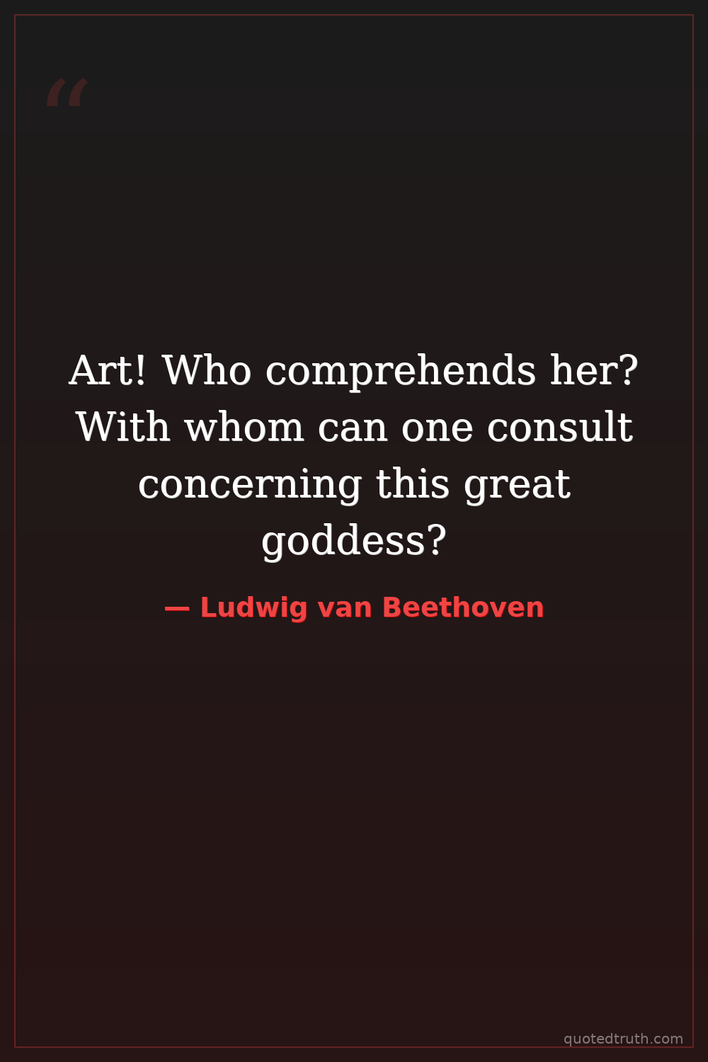 Art! Who comprehends her? With whom can one consult concerning this great goddess?