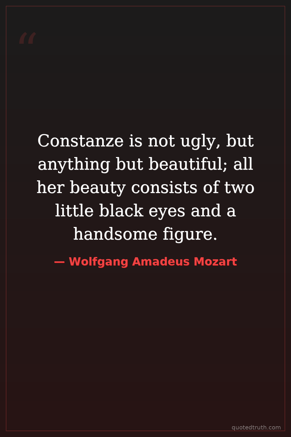 Constanze is not ugly, but anything but beautiful; all her beauty consists of two little black eyes and a handsome figure.