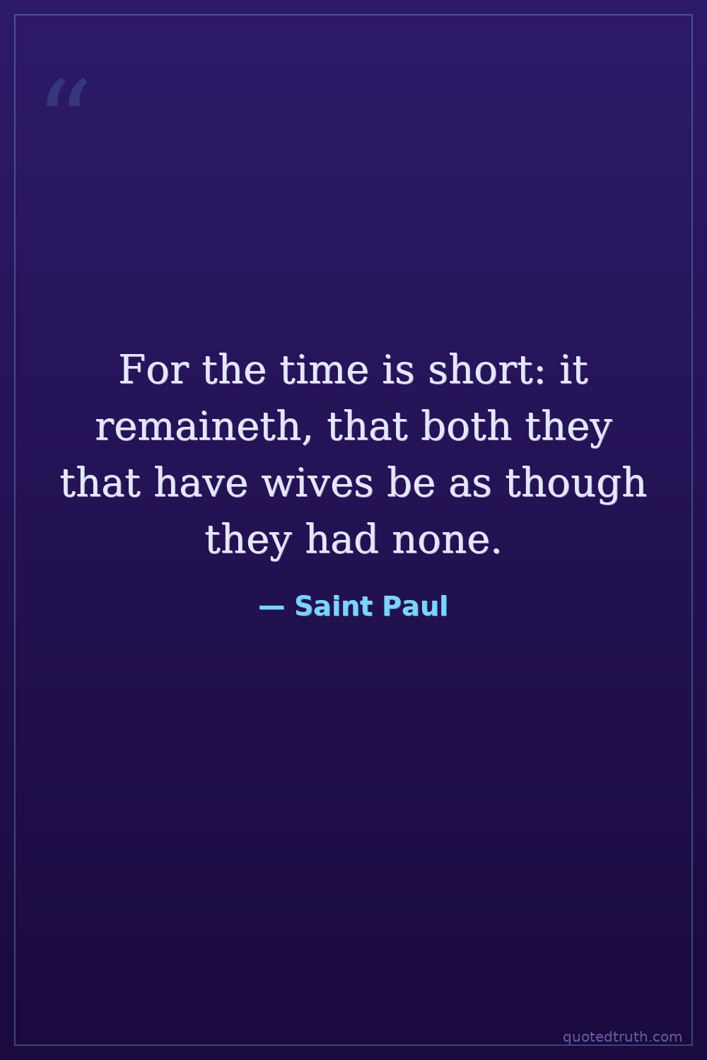 For the time is short: it remaineth, that both they that have wives be as though they had none.