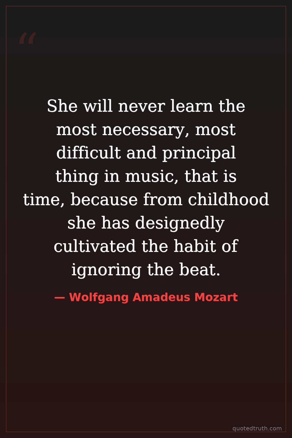 She will never learn the most necessary, most difficult and principal thing in music, that is time, because from childhood she has designedly cultivated the habit of ignoring the beat.
