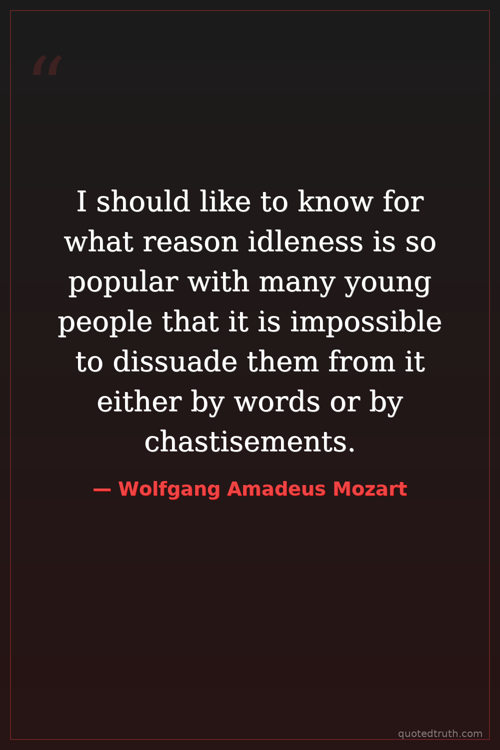 I should like to know for what reason idleness is so popular with many young people that it is impossible to dissuade them from it either by words or by chastisements.