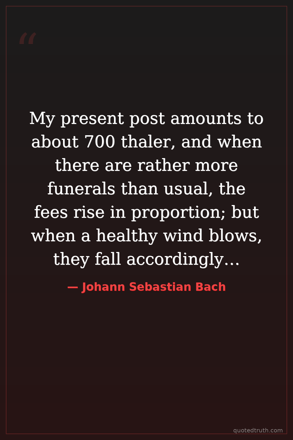 My present post amounts to about 700 thaler, and when there are rather more funerals than usual, the fees rise in proportion; but when a healthy wind blows, they fall accordingly…