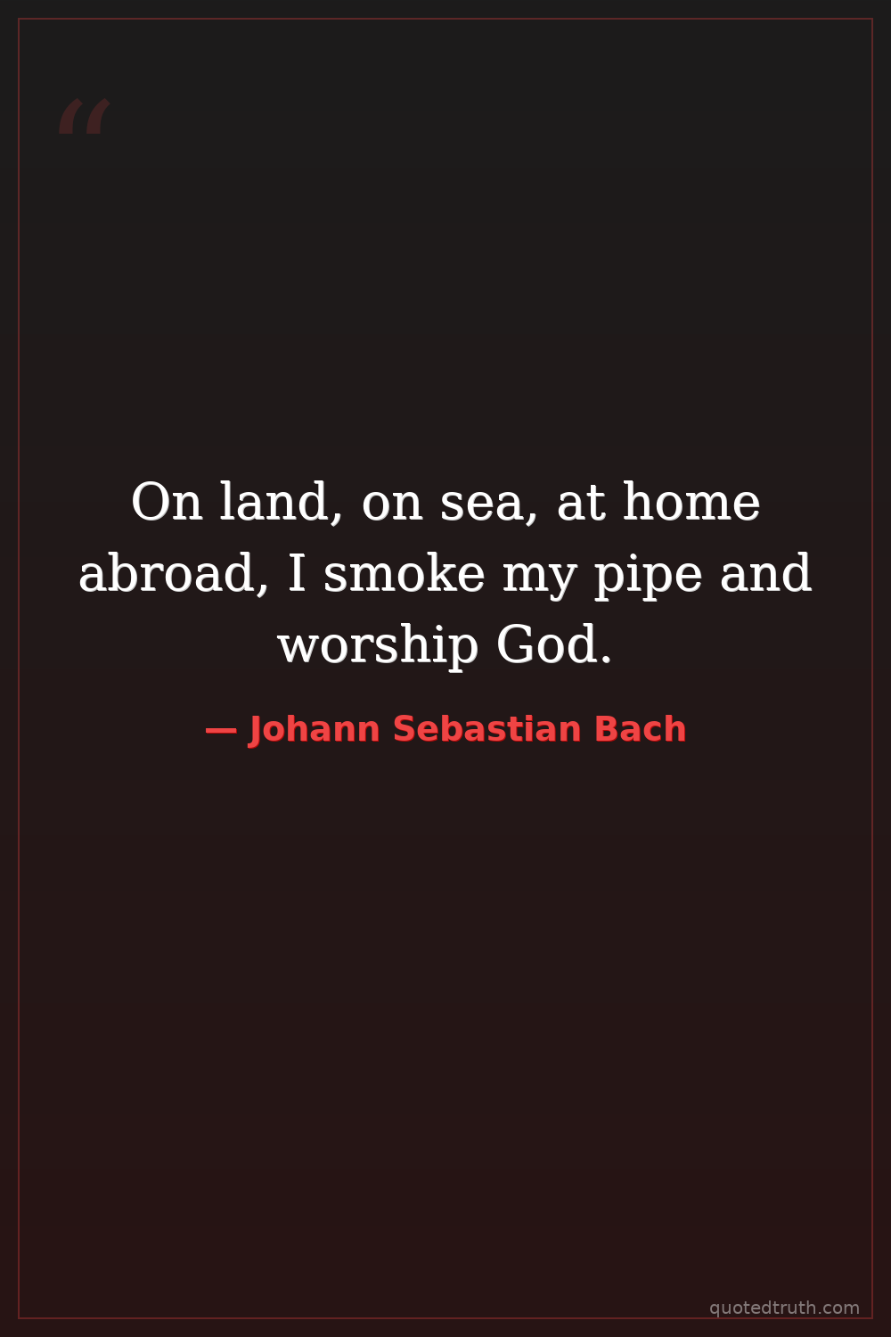 On land, on sea, at home abroad, I smoke my pipe and worship God.