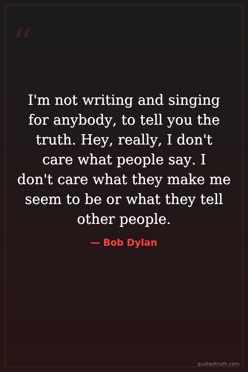I'm not writing and singing for anybody, to tell you the truth. Hey, really, I don't care what people say. I don't care what they make me seem to be or what they tell other people.