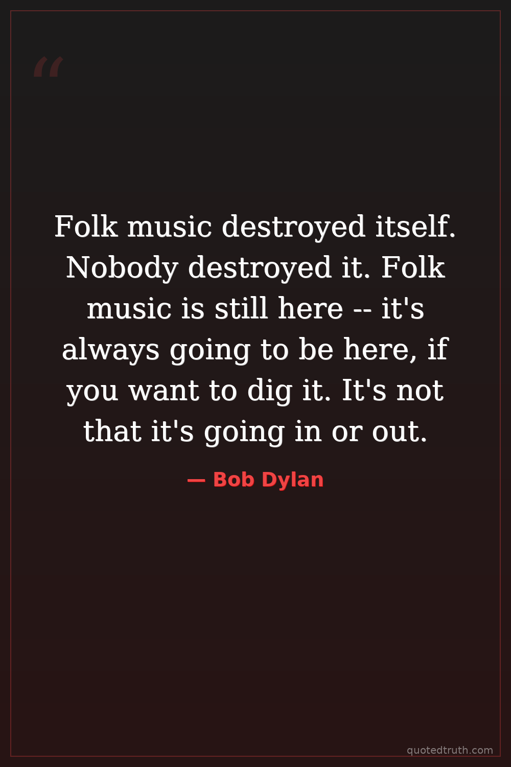 Folk music destroyed itself. Nobody destroyed it. Folk music is still here -- it's always going to be here, if you want to dig it. It's not that it's going in or out.
