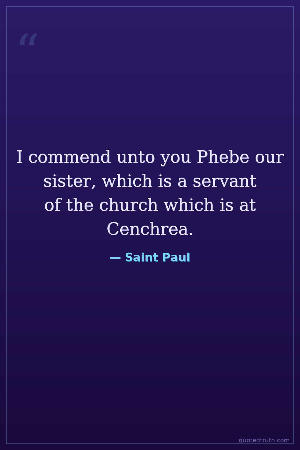 I commend unto you Phebe our sister, which is a servant of the church which is at Cenchrea.