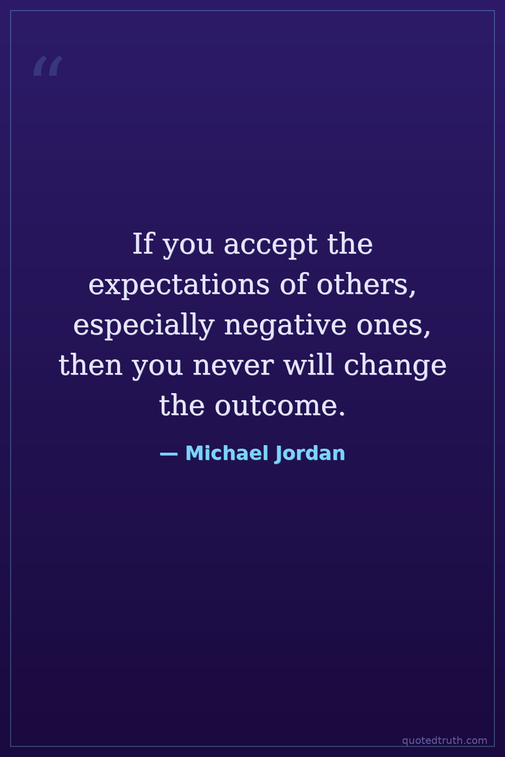 If you accept the expectations of others, especially negative ones, then you never will change the outcome.