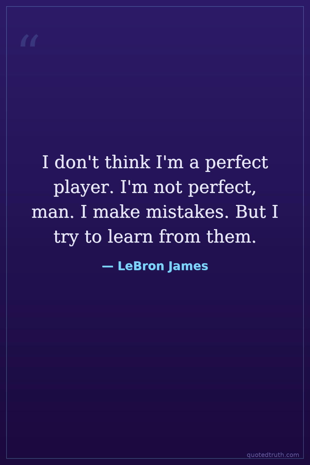 I don't think I'm a perfect player. I'm not perfect, man. I make mistakes. But I try to learn from them.