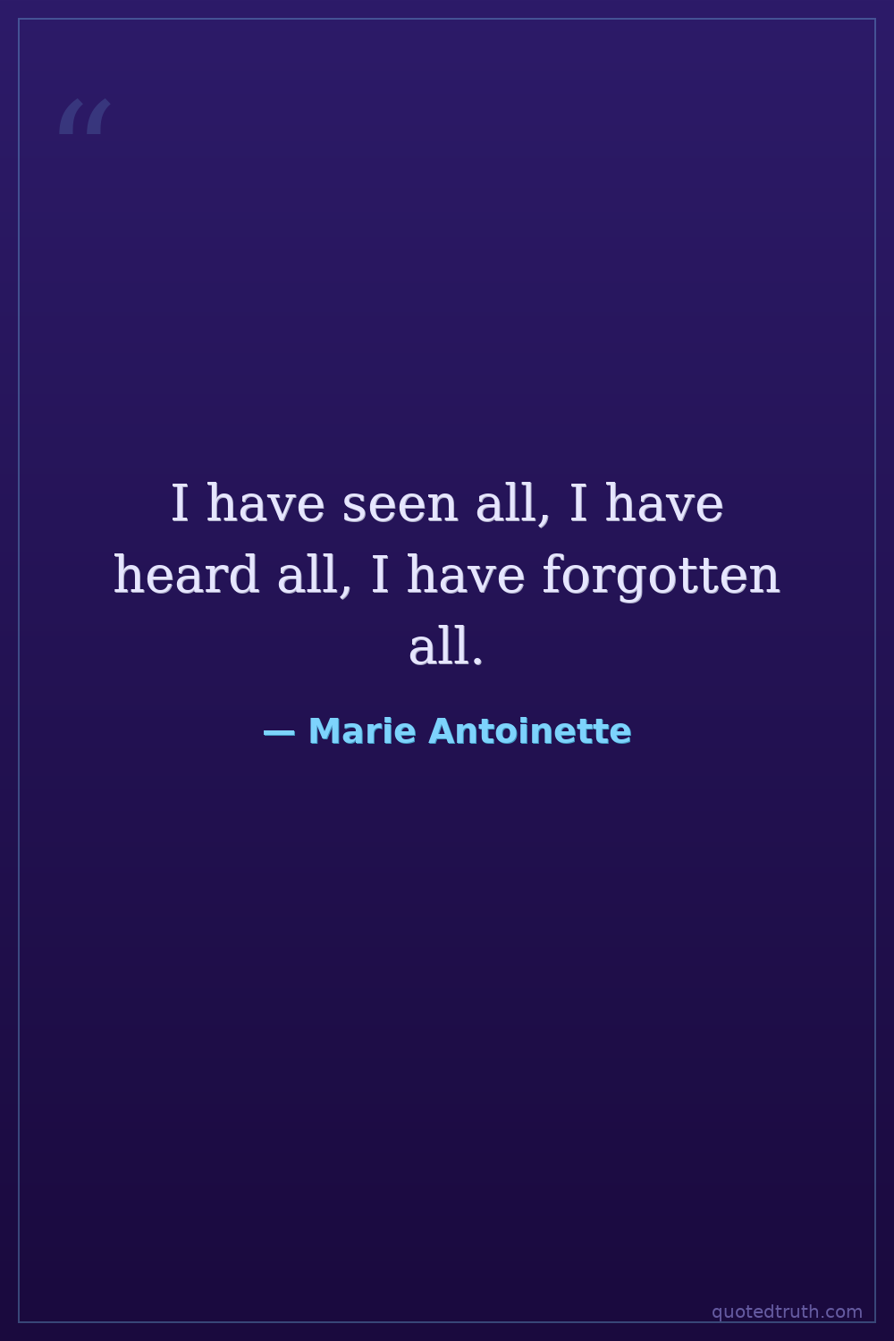 I have seen all, I have heard all, I have forgotten all.