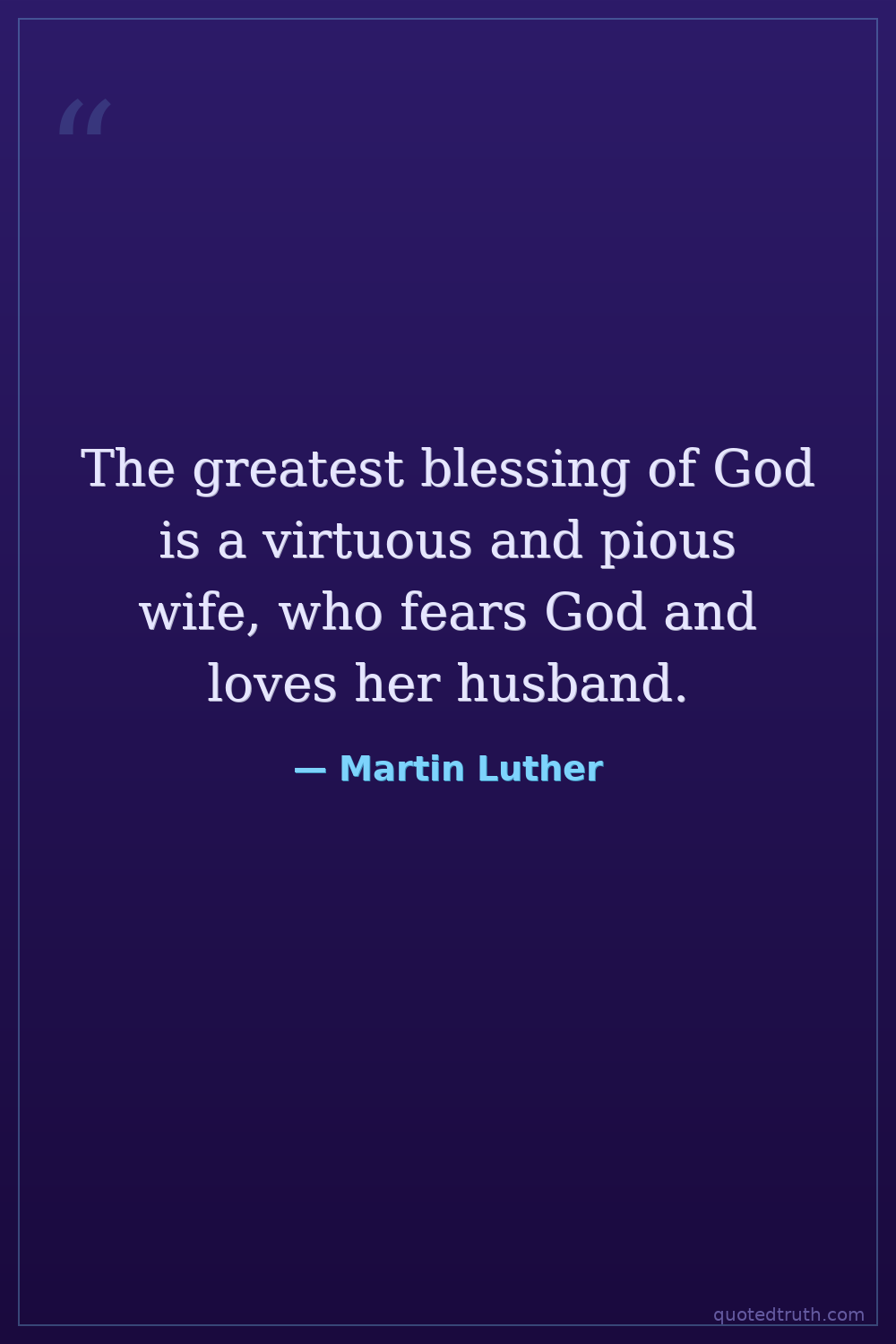 The greatest blessing of God is a virtuous and pious wife, who fears God and loves her husband.