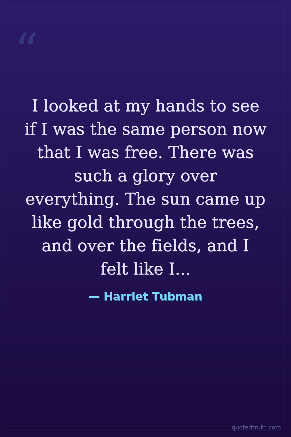 I looked at my hands to see if I was the same person now that I was free. There was such a glory over everything. The sun came up like gold through the trees, and over the fields, and I felt like I was in heaven.