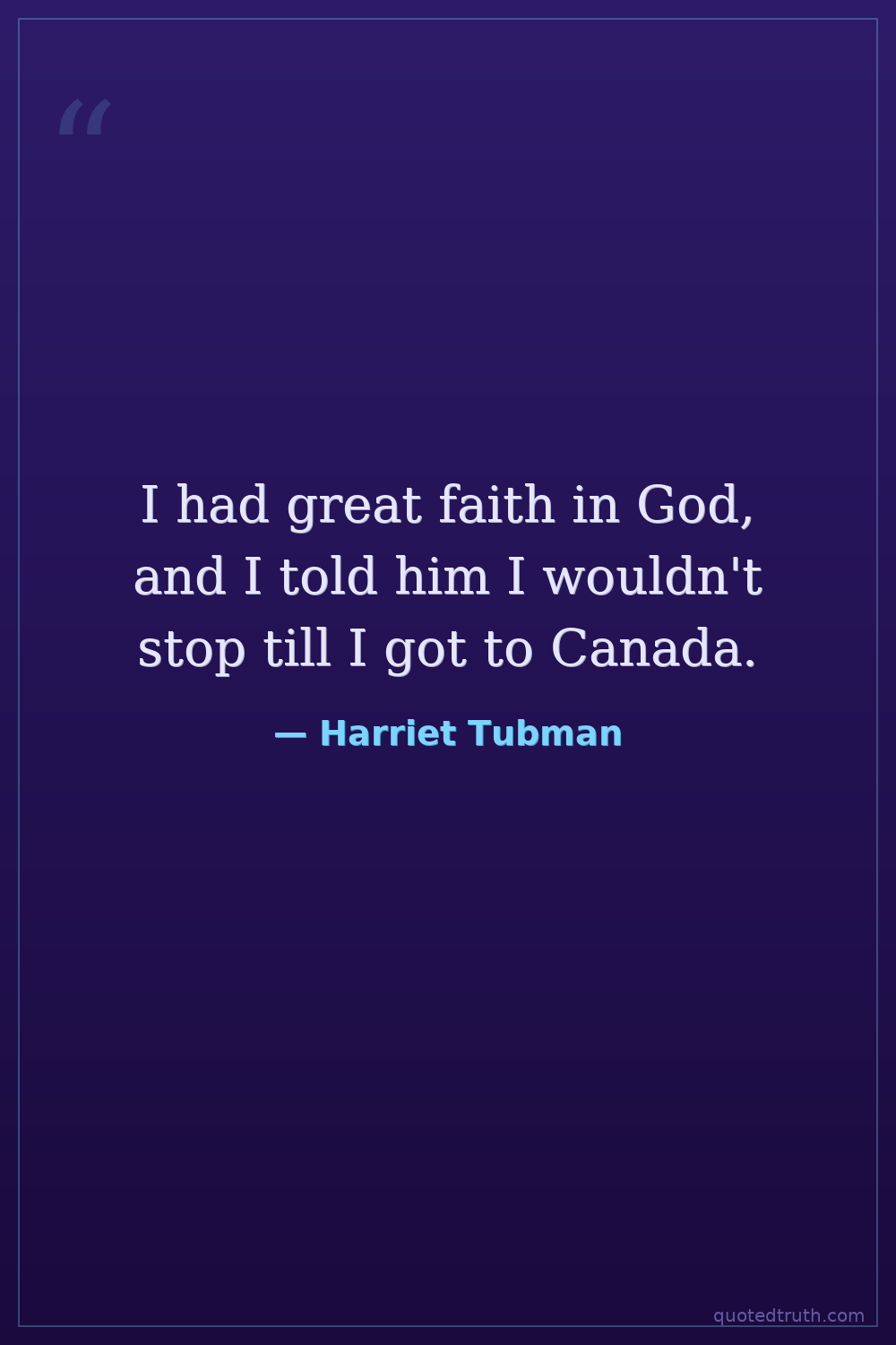 I had great faith in God, and I told him I wouldn't stop till I got to Canada.