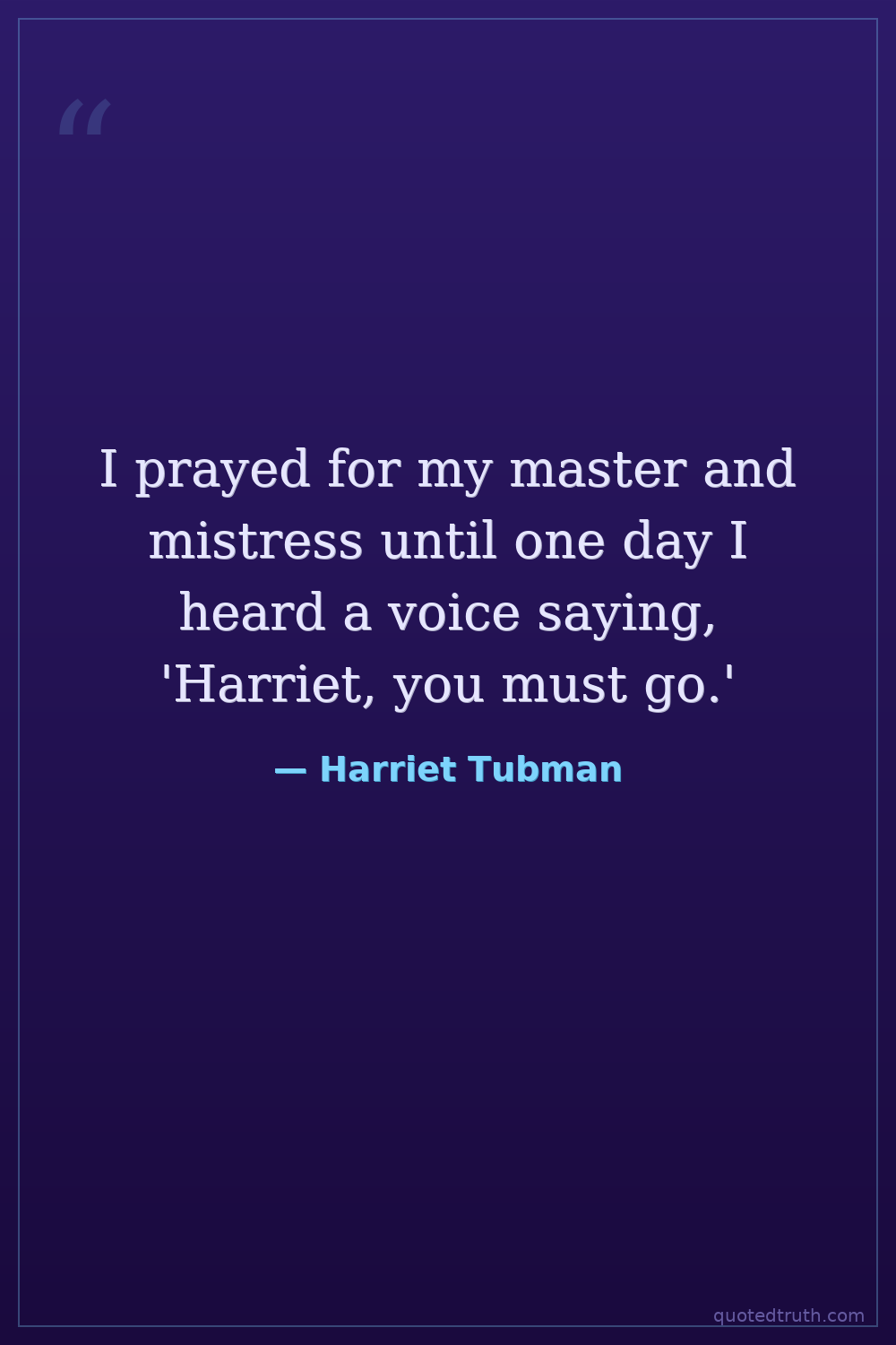 I prayed for my master and mistress until one day I heard a voice saying, 'Harriet, you must go.'