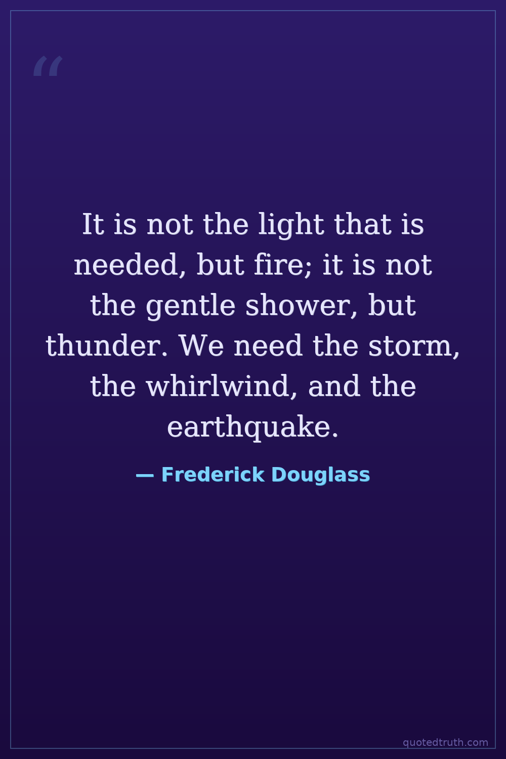 It is not the light that is needed, but fire; it is not the gentle shower, but thunder. We need the storm, the whirlwind, and the earthquake.