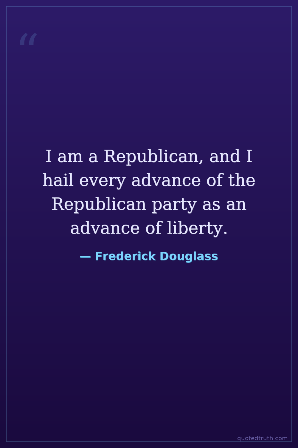 I am a Republican, and I hail every advance of the Republican party as an advance of liberty.