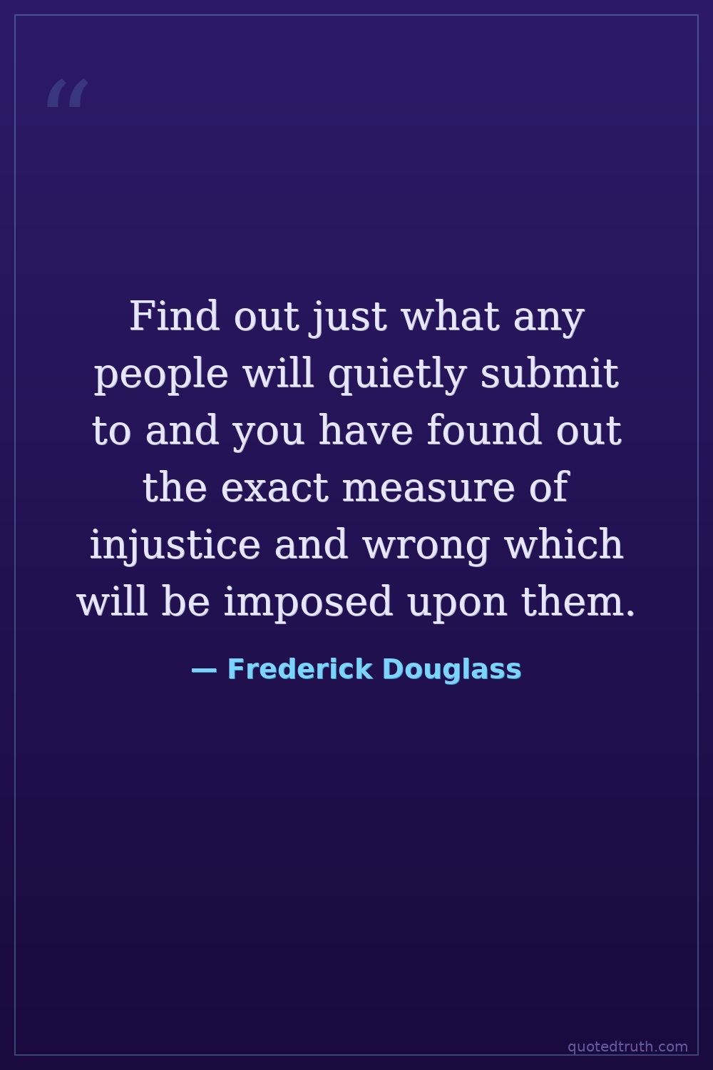 Find out just what any people will quietly submit to and you have found out the exact measure of injustice and wrong which will be imposed upon them.