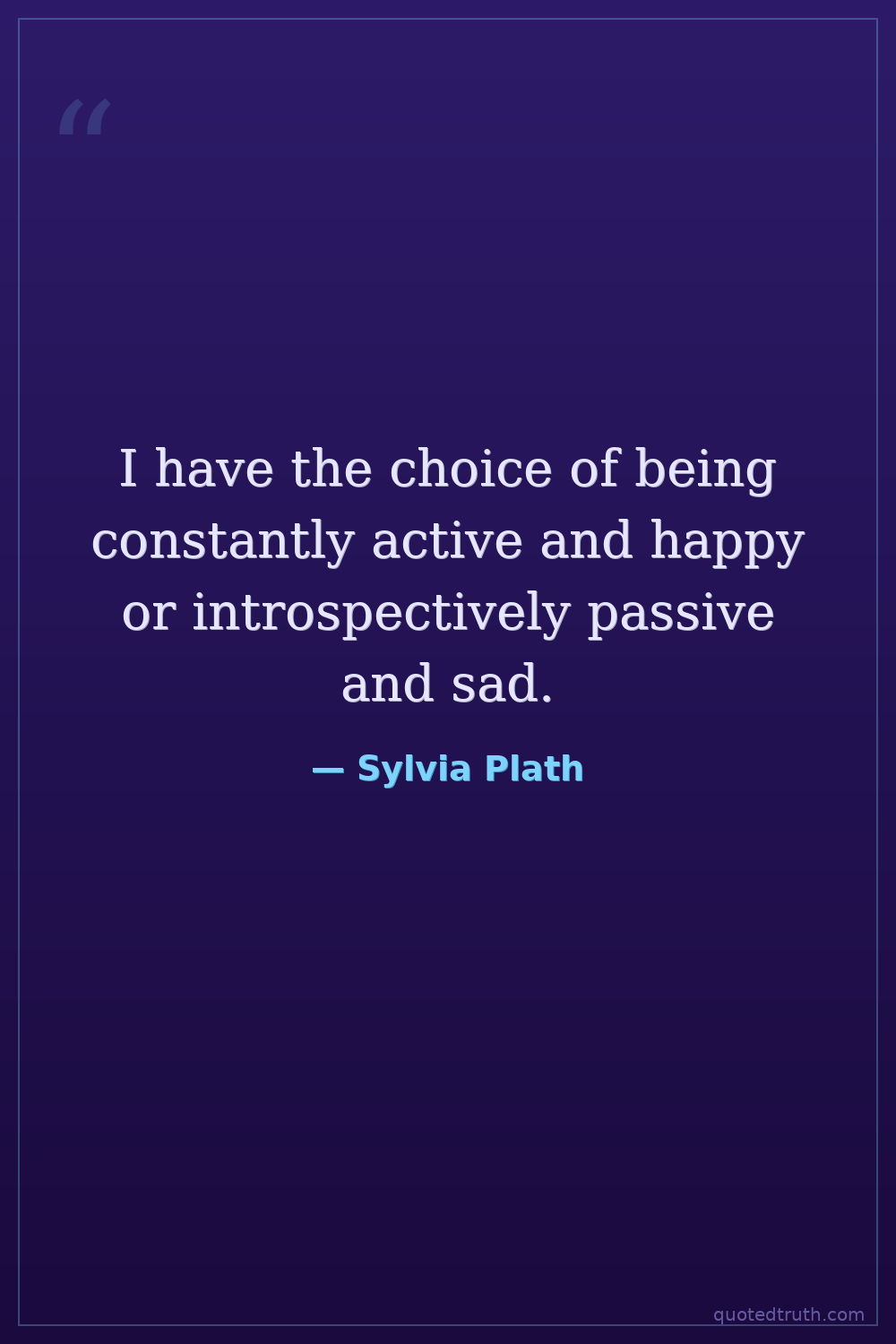 I have the choice of being constantly active and happy or introspectively passive and sad.