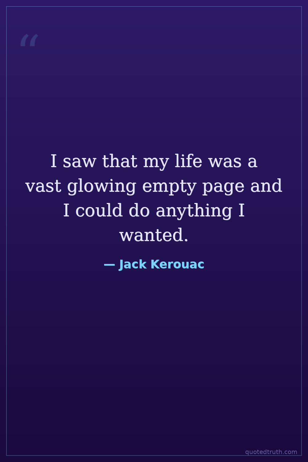 I saw that my life was a vast glowing empty page and I could do anything I wanted.