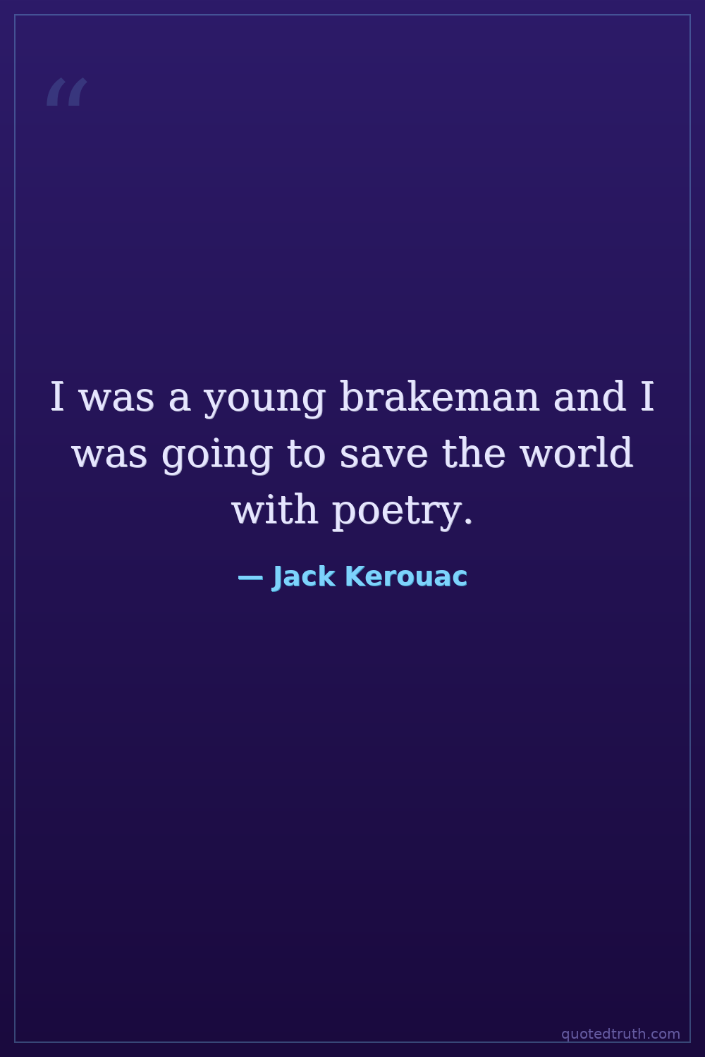 I was a young brakeman and I was going to save the world with poetry.