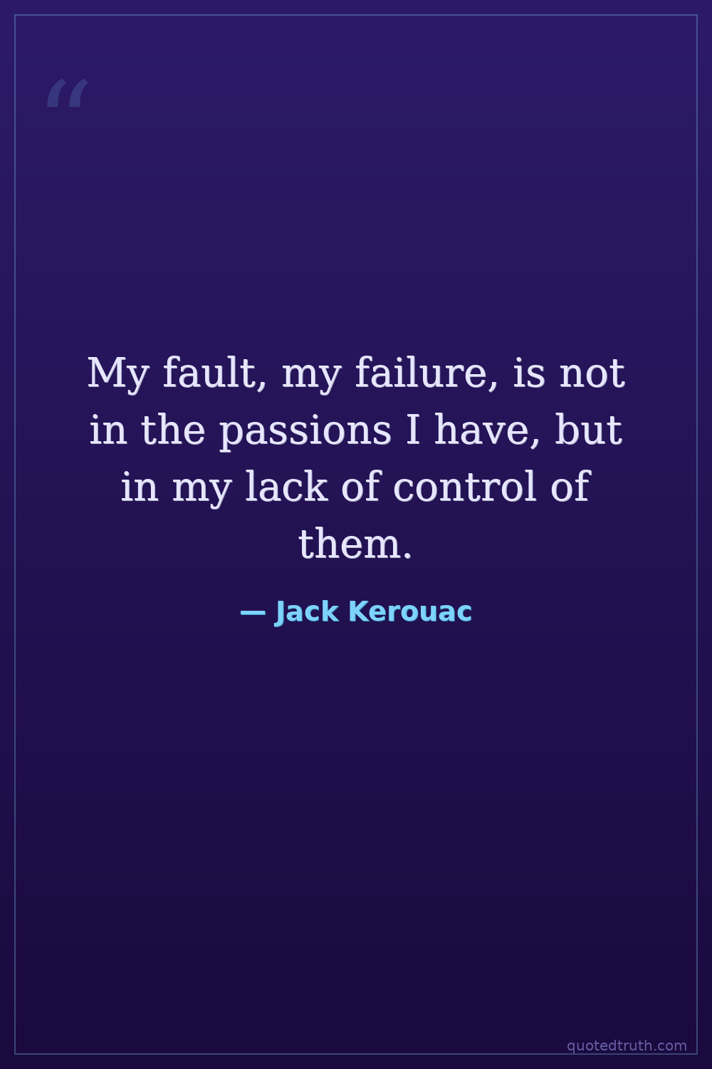 My fault, my failure, is not in the passions I have, but in my lack of control of them.