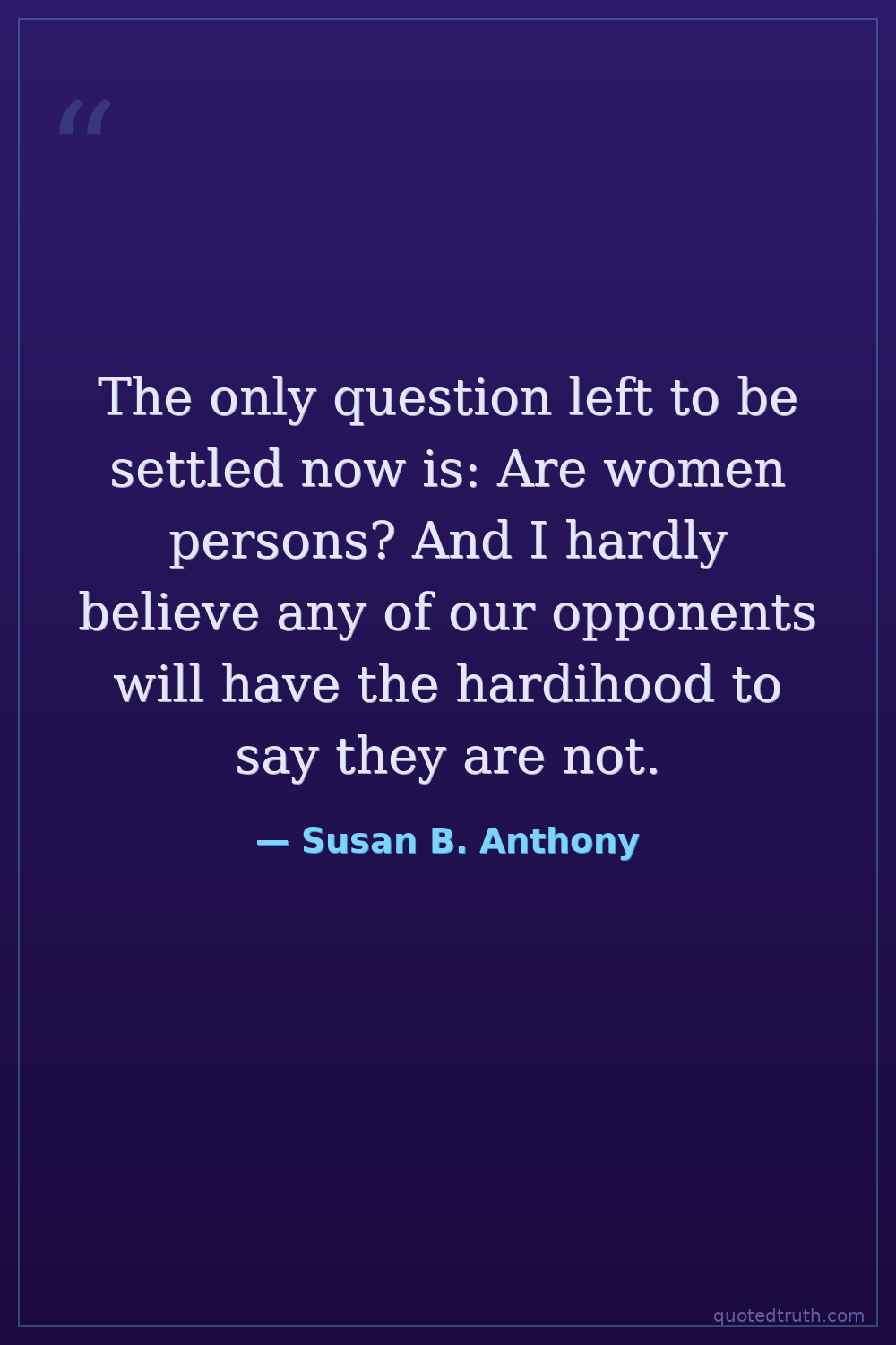 The only question left to be settled now is: Are women persons? And I hardly believe any of our opponents will have the hardihood to say they are not.