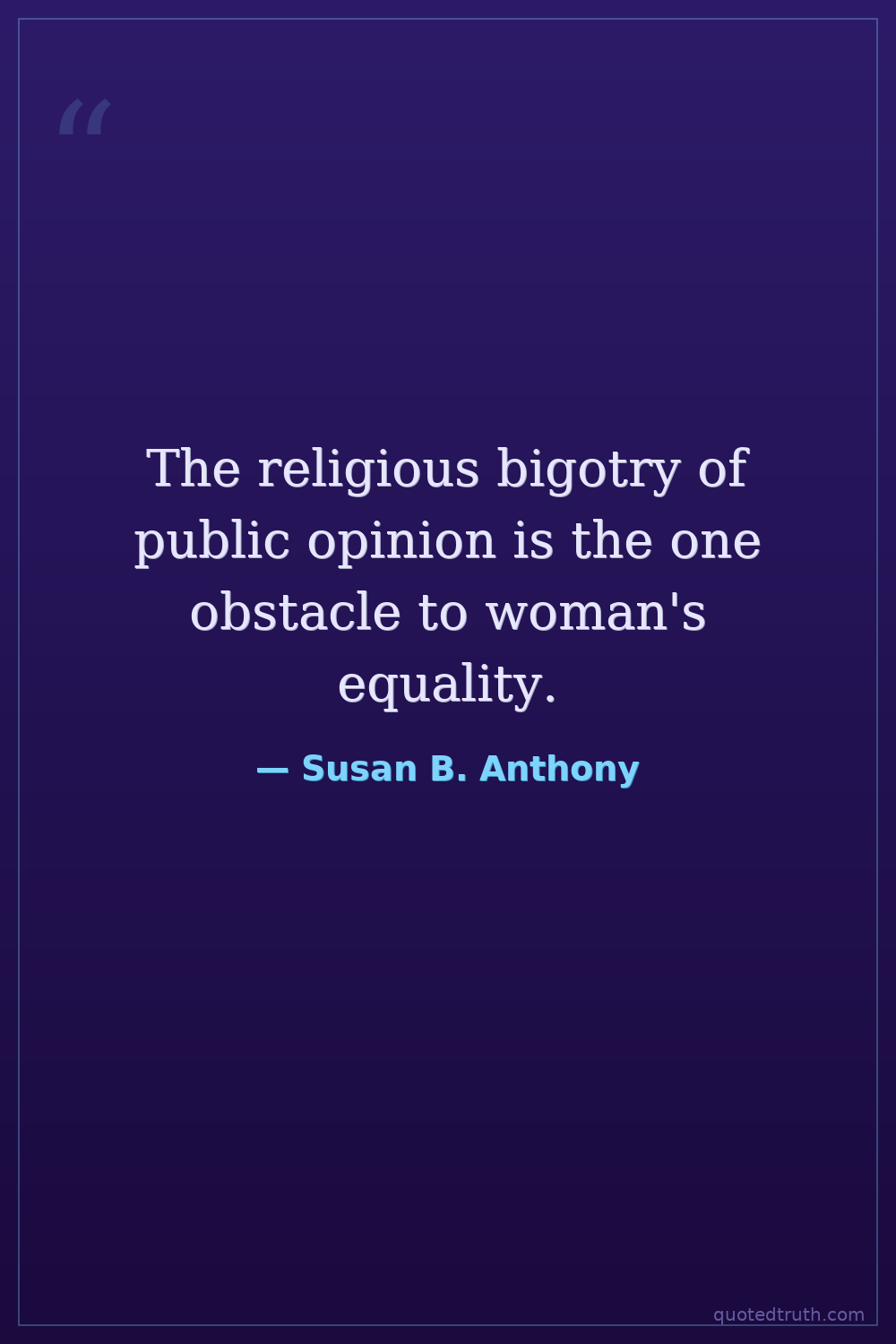 The religious bigotry of public opinion is the one obstacle to woman's equality.