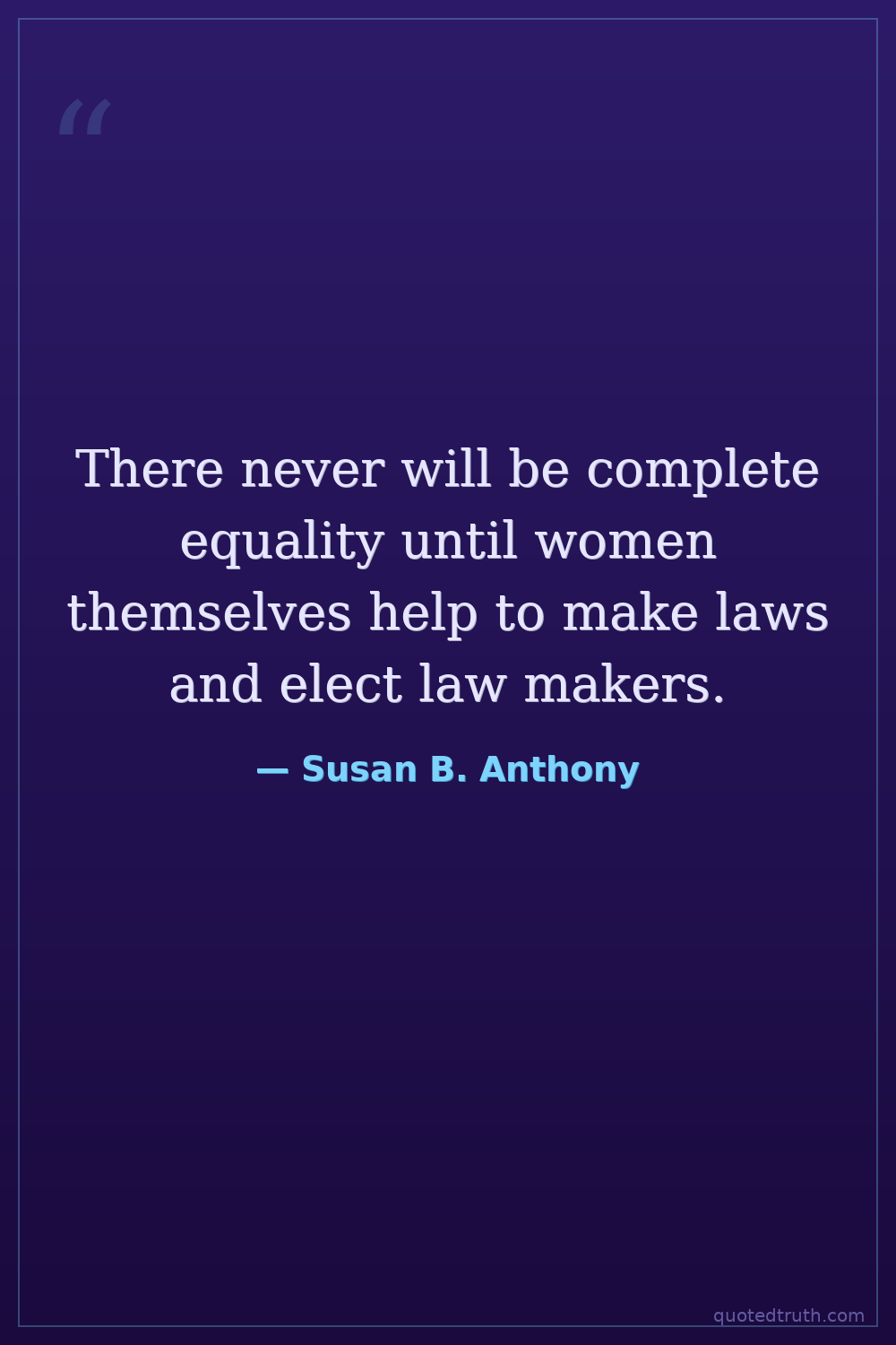 There never will be complete equality until women themselves help to make laws and elect law makers.