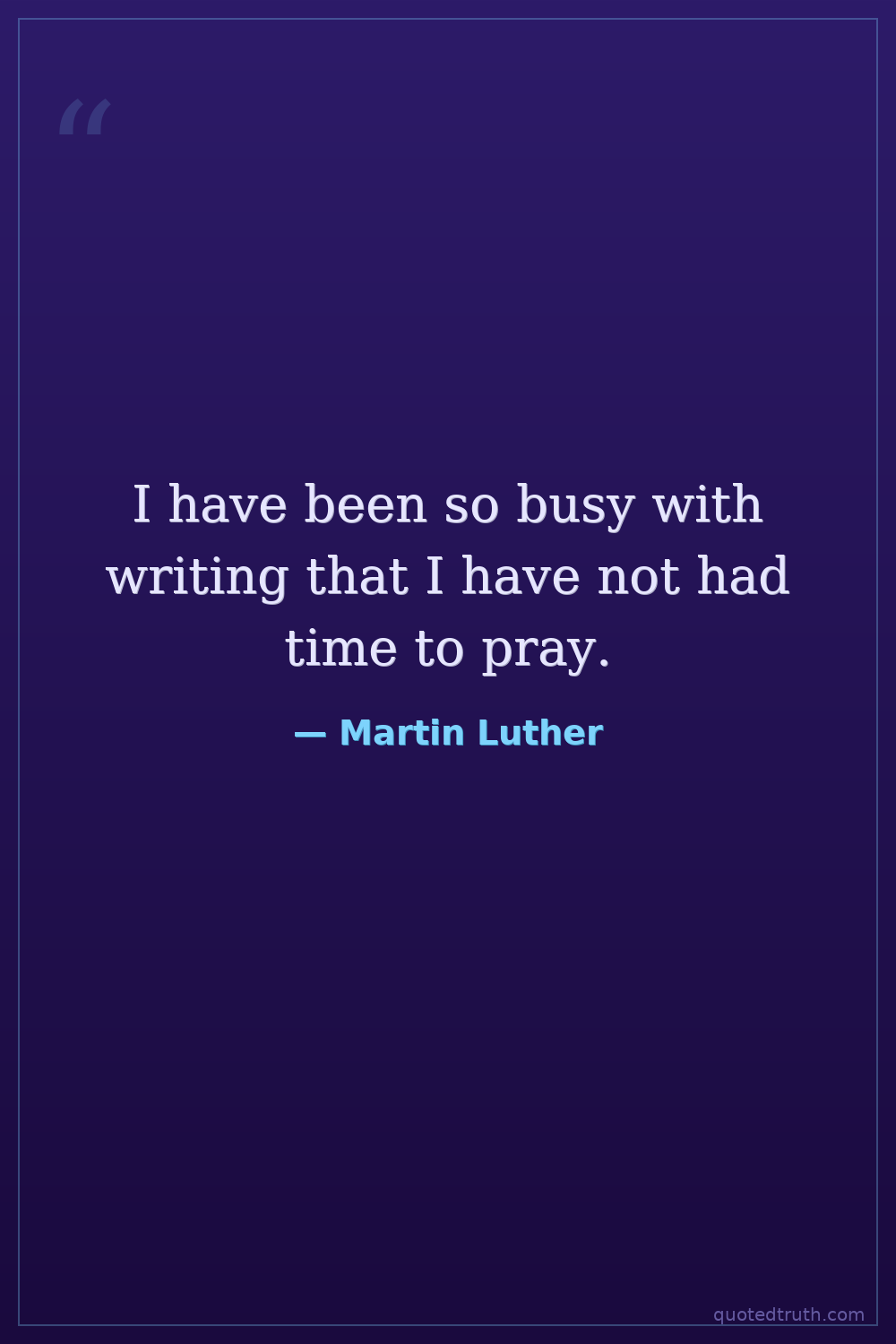 I have been so busy with writing that I have not had time to pray.