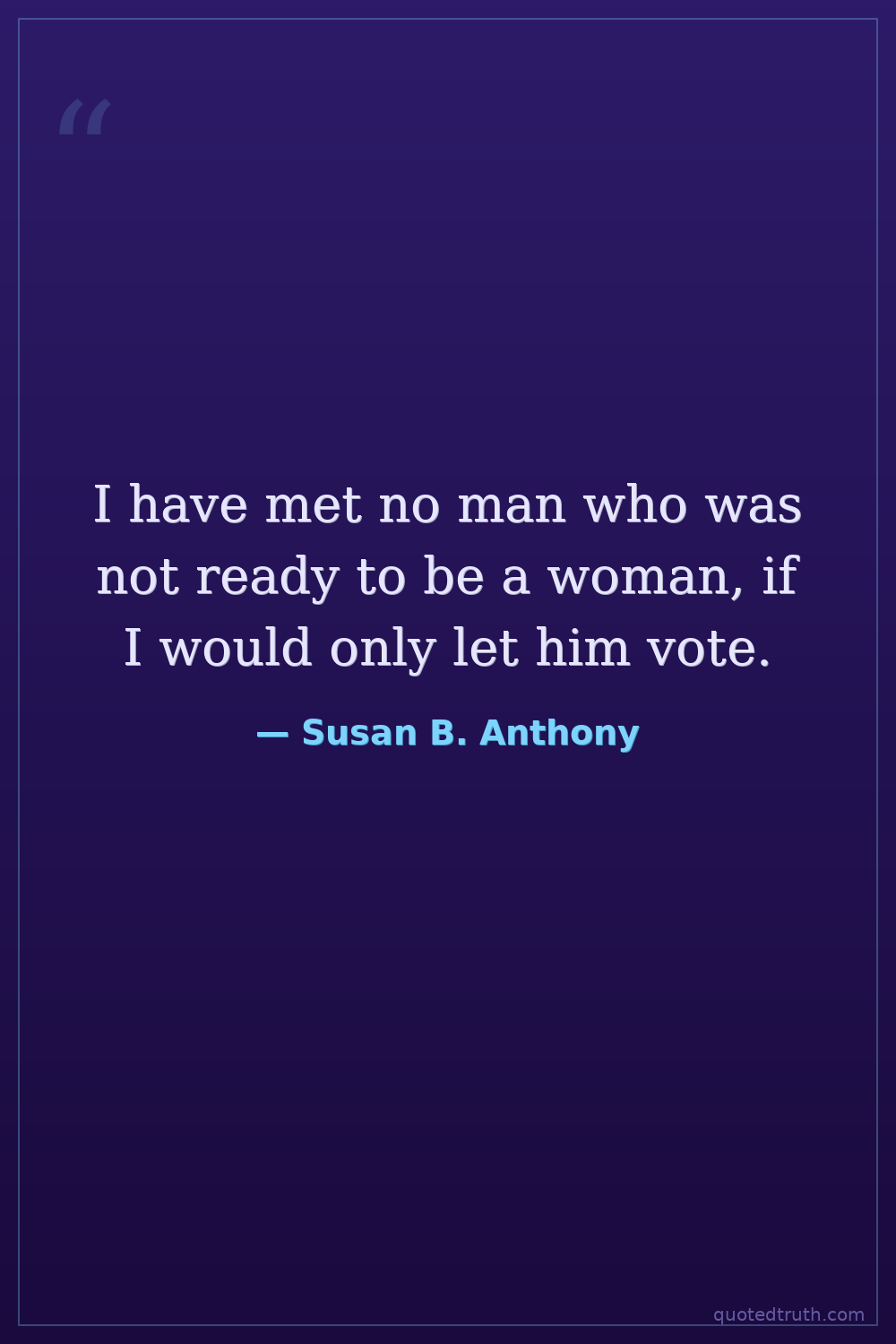 I have met no man who was not ready to be a woman, if I would only let him vote.