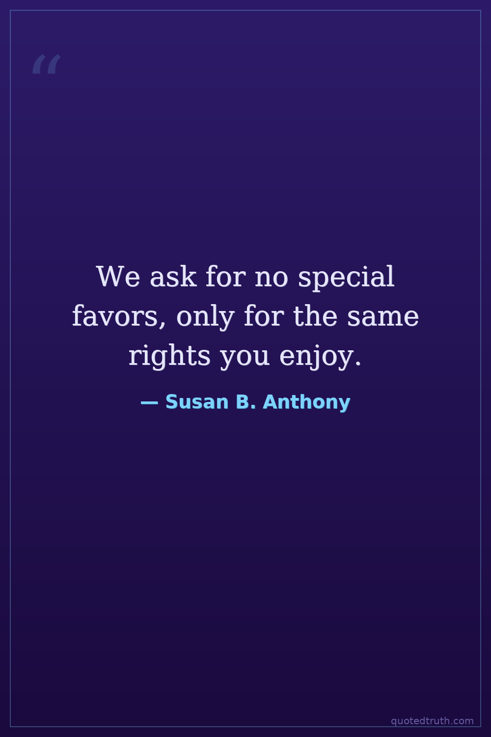 "The true republic—men, their rights and nothing more; women, their rights and nothing less."