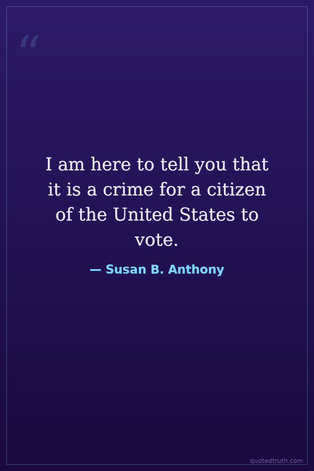 Slightly misquoted, but the essence of her speech title 'Is it a Crime for a Citizen of the United States to Vote?'