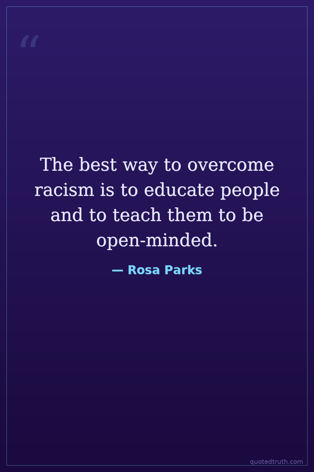The best way to overcome racism is to educate people and to teach them to be open-minded.