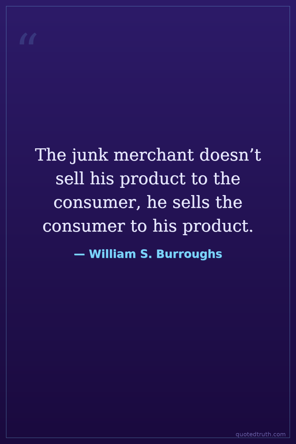 The junk merchant doesn’t sell his product to the consumer, he sells the consumer to his product.