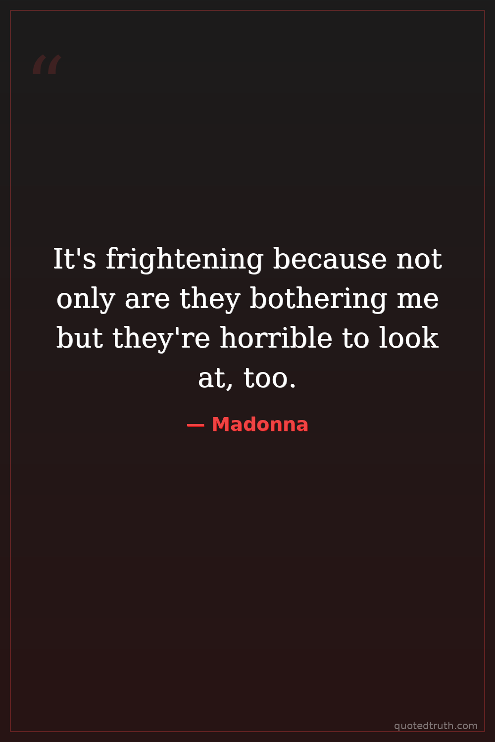 It's frightening because not only are they bothering me but they're horrible to look at, too.
