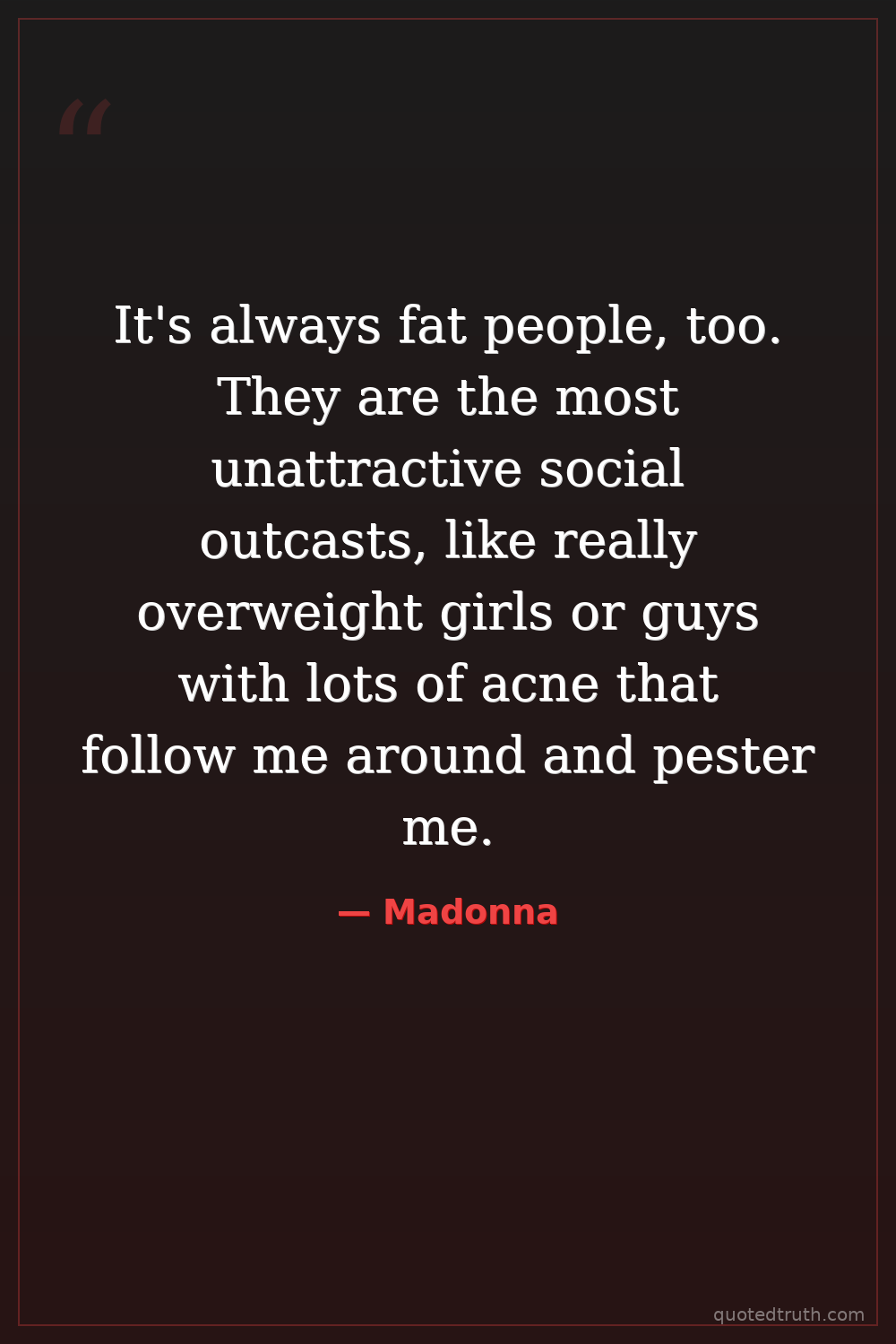 It's always fat people, too. They are the most unattractive social outcasts, like really overweight girls or guys with lots of acne that follow me around and pester me.