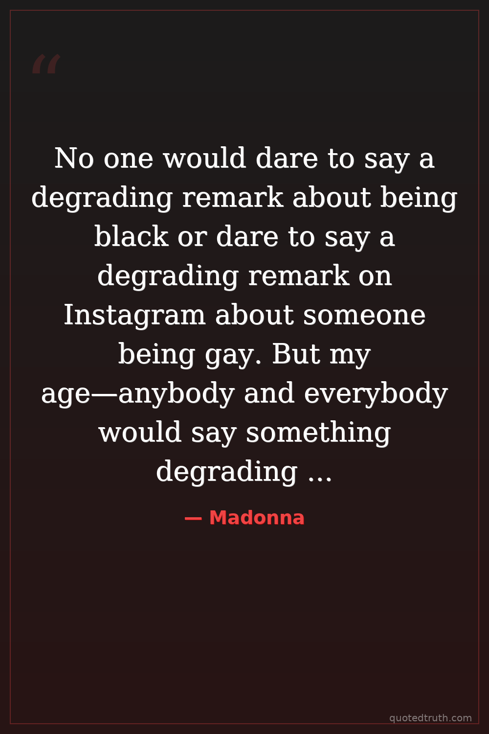 No one would dare to say a degrading remark about being black or dare to say a degrading remark on Instagram about someone being gay. But my age—anybody and everybody would say something degrading to me. And I always think to myself, why is that accepted?