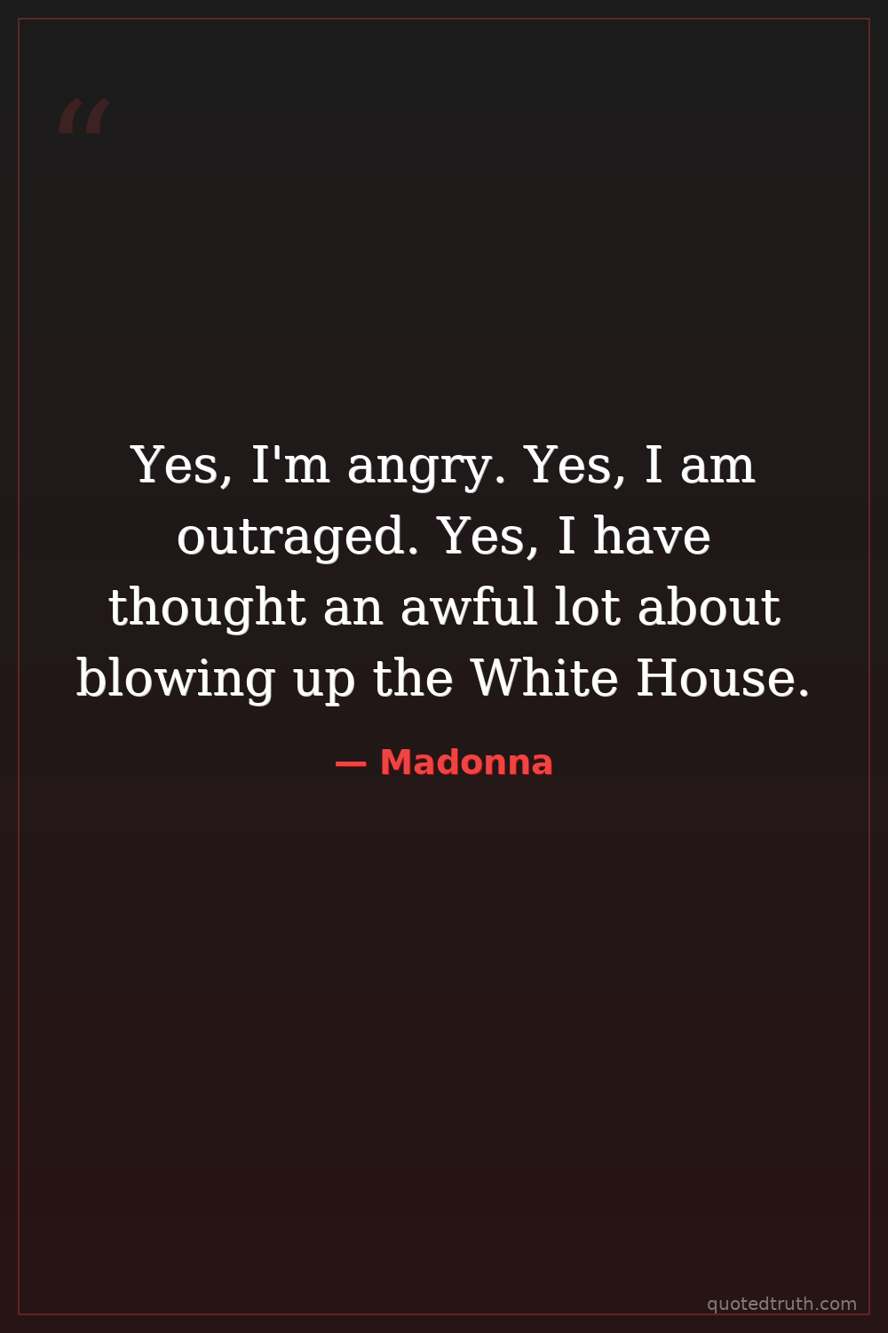 Yes, I'm angry. Yes, I am outraged. Yes, I have thought an awful lot about blowing up the White House.