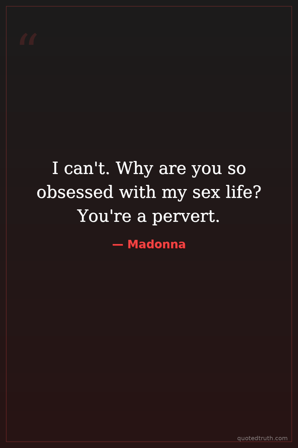 I can't. Why are you so obsessed with my sex life? You're a pervert.