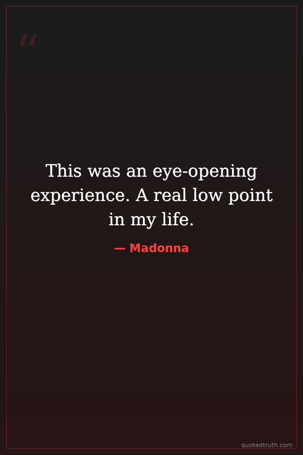 This was an eye-opening experience. A real low point in my life.