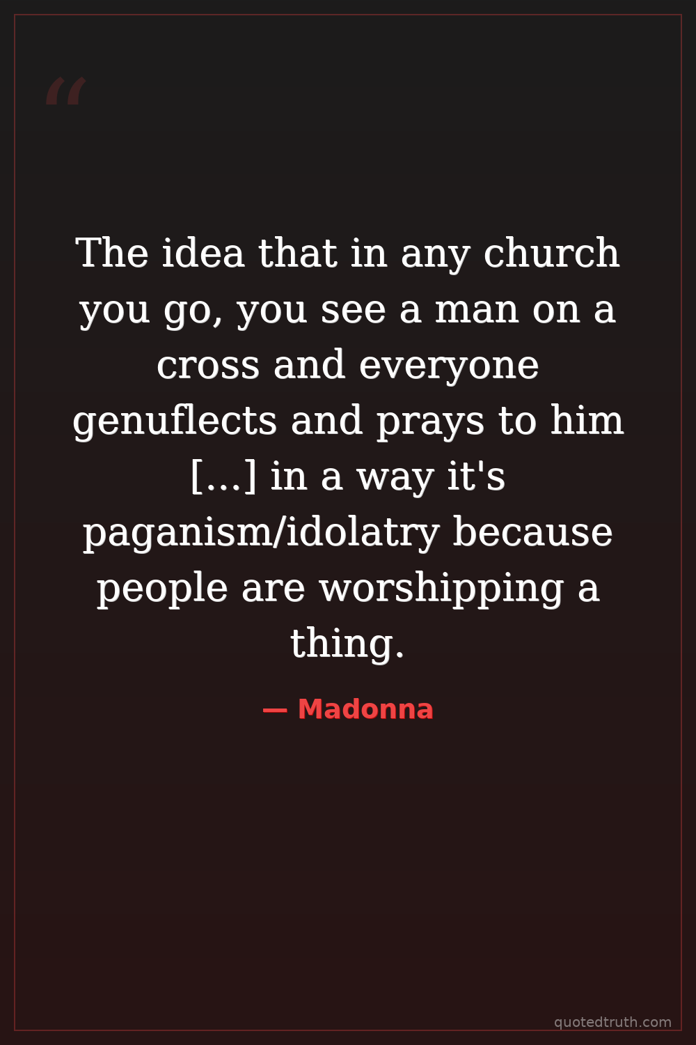 The idea that in any church you go, you see a man on a cross and everyone genuflects and prays to him [...] in a way it's paganism/idolatry because people are worshipping a thing.