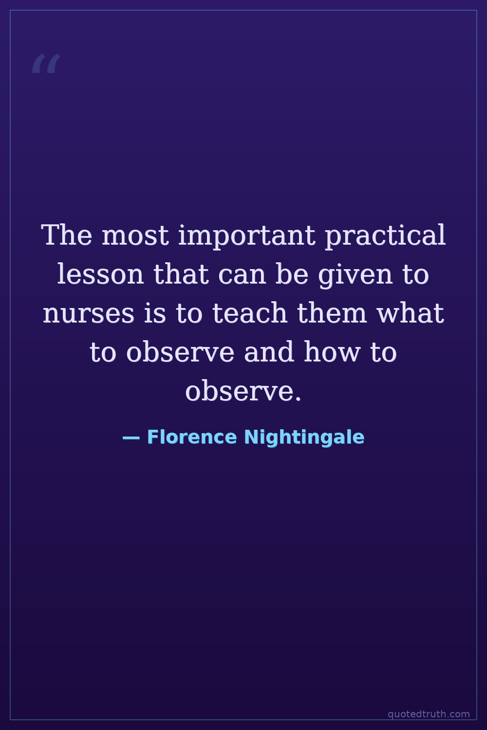 The most important practical lesson that can be given to nurses is to teach them what to observe and how to observe.