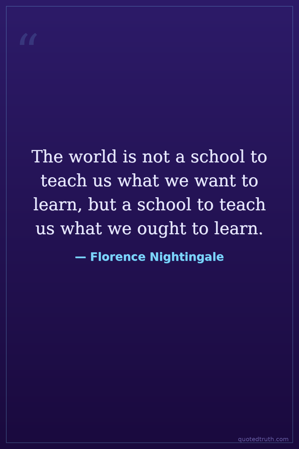 The world is not a school to teach us what we want to learn, but a school to teach us what we ought to learn.
