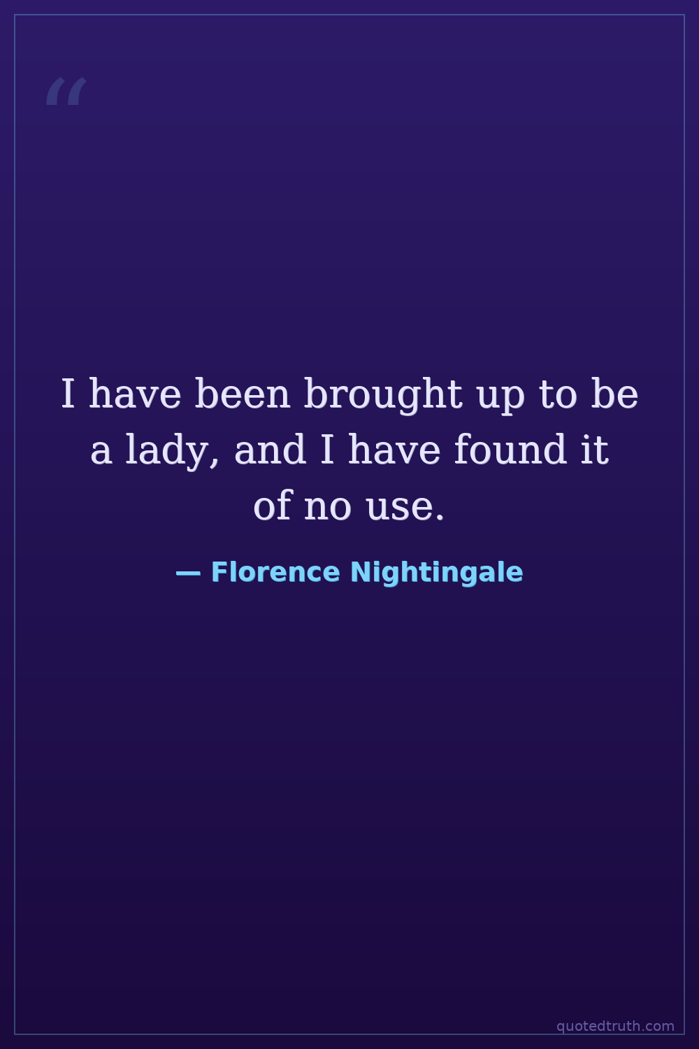 I have been brought up to be a lady, and I have found it of no use.