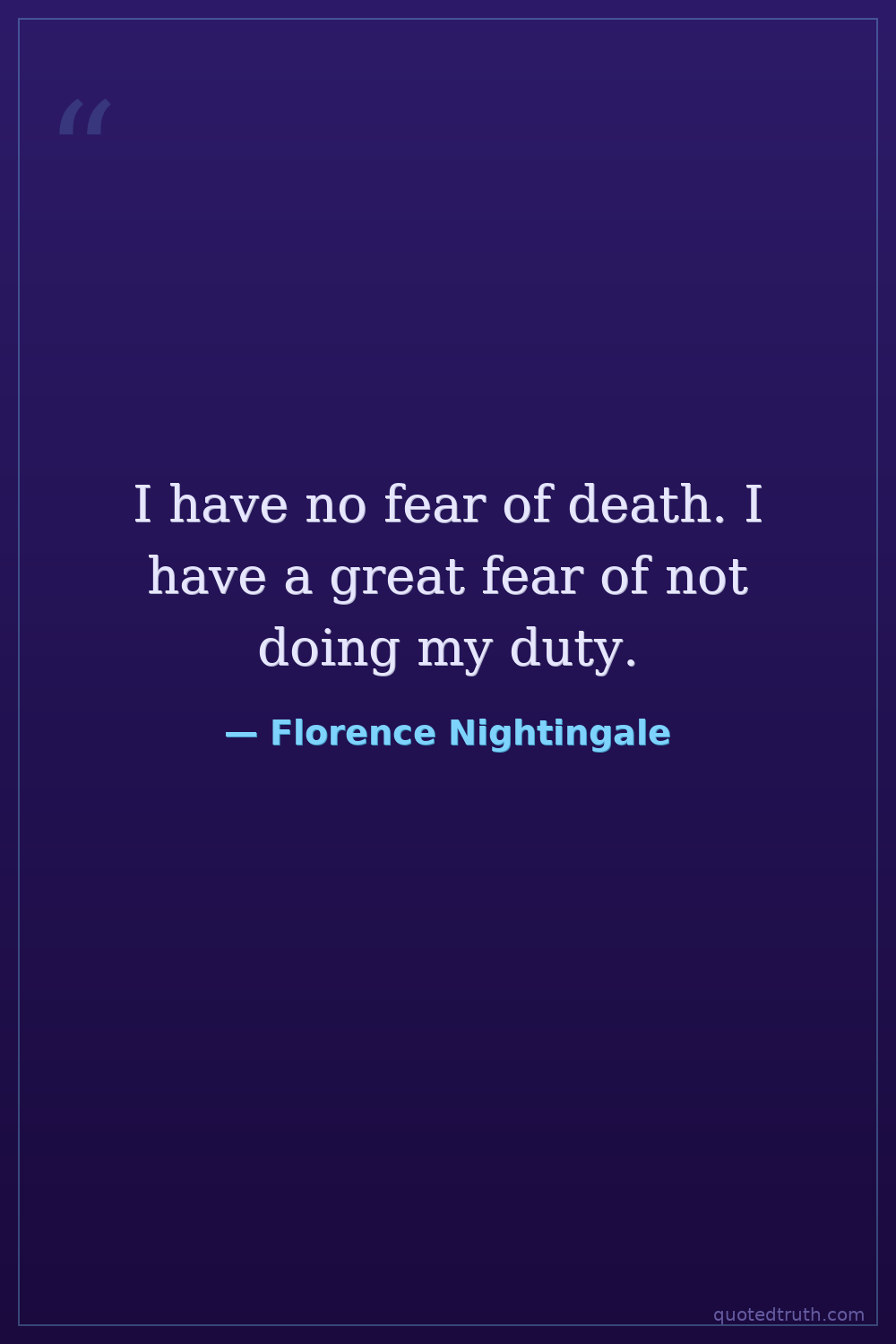 I have no fear of death. I have a great fear of not doing my duty.