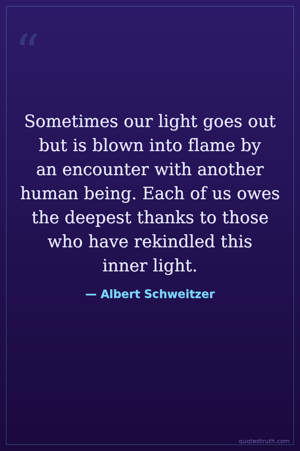 Sometimes our light goes out but is blown into flame by an encounter with another human being. Each of us owes the deepest thanks to those who have rekindled this inner light.